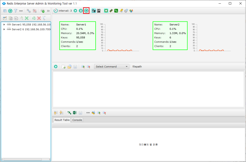 - 빨간 사각형으로 표시된 [새로 고침] 아이콘을 클릭해서 서버 모니터링을 시작합니다.