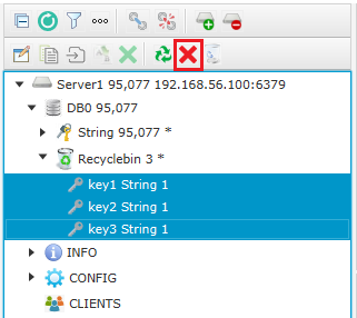 아래는 redisAdmin 툴 Recyclebin에서 key1, key2, key3을 선택 후 rmkeybin icon을 클릭해서 삭제하는 화면입니다.
